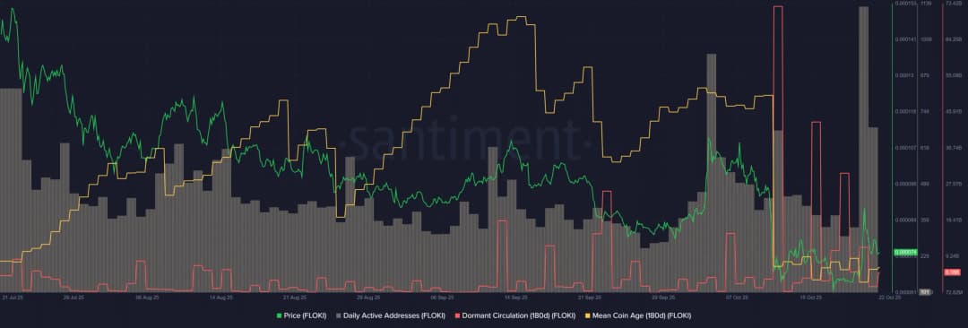 در چند روز اخیر، هرچند معیار آدرسهای فعال روزانه افزایش یافته است، میانگین سن سکه ثابت مانده است. این نشان میدهد که فاز تجمع در سطح شبکه در حال رخ دادن نیست. این موضوع دیدگاه احتیاطآمیز نسبت به گاوهای FLOKI را تقویت میکند.