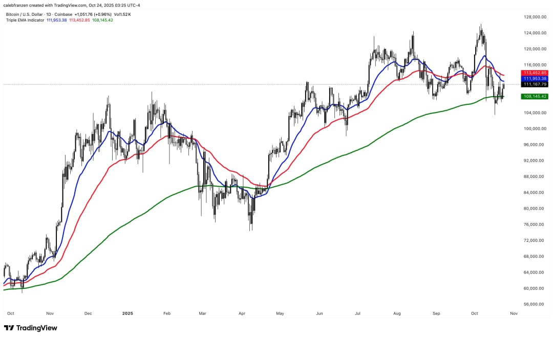 کالب فرانزن، سازنده منبع تحقیق مالی Cubic Analytics، سه میانگین متحرک نمایی (EMA) را برجسته کرد که حالا ضروری است بهعنوان حمایت پس گرفته شوند. او در توییتی نوشت: «$BTC فعلاً روی EMA 200 روزه بازگشت قیمت داشته است. اما اکنون باید بالاتر برود و بالای 21 و 55 بسته شود، که در بازآزمون اوایل این هفته بهعنوان مقاومت عمل کردند.»