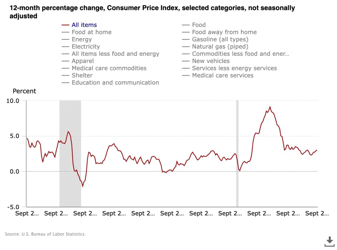 نسخه سپتامبر شاخص قیمت مصرف کننده (CPI) در همه بخشها کمتر از انتظارات اعلام شد که این امر به عنوان نیروی محرکهای مهم برای رمز ارز و داراییهای پرریسک تلقی شد. هر دو شاخص CPI و هستهای CPI حدود 0.1% کمتر از سطوح پیشبینیشده بودند و در حول و حوش 3% گزارش شدند، طبق انتشار رسمی از اداره آمار کار آمریکا (BLS).