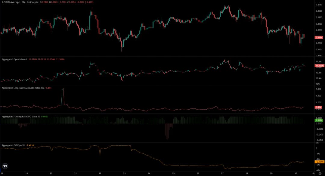 افزایش CVD اسپات در 24 ساعت گذشته اندکی برانگیختن امید برای Vaulta را نشان داد، اما این جرقه احتمالاً به زودی از بین خواهد رفت. سطح 0.3 دلار آمریکا یک مقاومت محلی قدرتمند است. علاوه بر این، در افت قیمت دیروز از 0.29 دلار آمریکا به 0.2745 دلار آمریکا، ارزش قرارداد های باز افزایش یافت. این علامت افزایش فروش های کوتاه مدت را نشان می دهد و به توضیح کاهش Funding Rate کمک می کند.