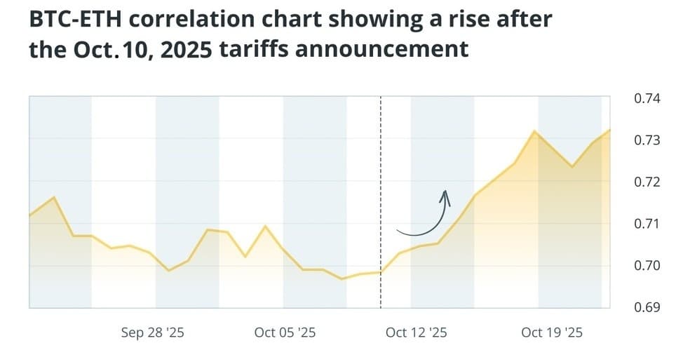 افزایش همبستگی بیت کوین و اتریوم | منبع: Coinmetrics
