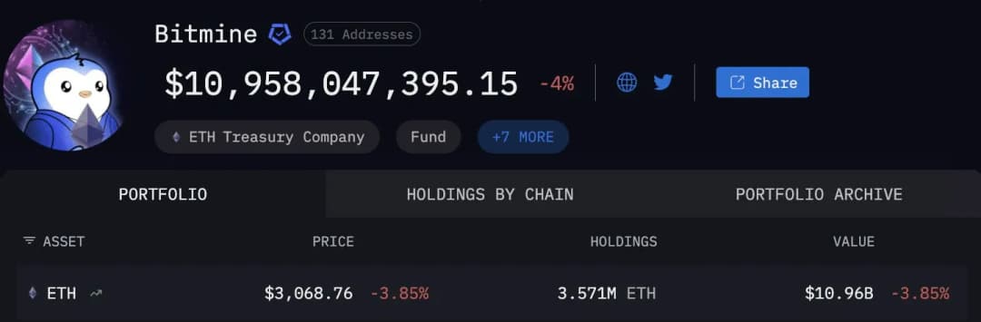 در این دوره، BitMine (BMNR) به عنوان بزرگ ترین محرک اتریوم ظاهر شد. تاریخچه تراکنش های BMNR در CoinGecko نشان می دهد تنها در سه ماهه سوم یازده تراکنش اتریوم ثبت شده که مجموعا به انباشت عظیمی انجامید.