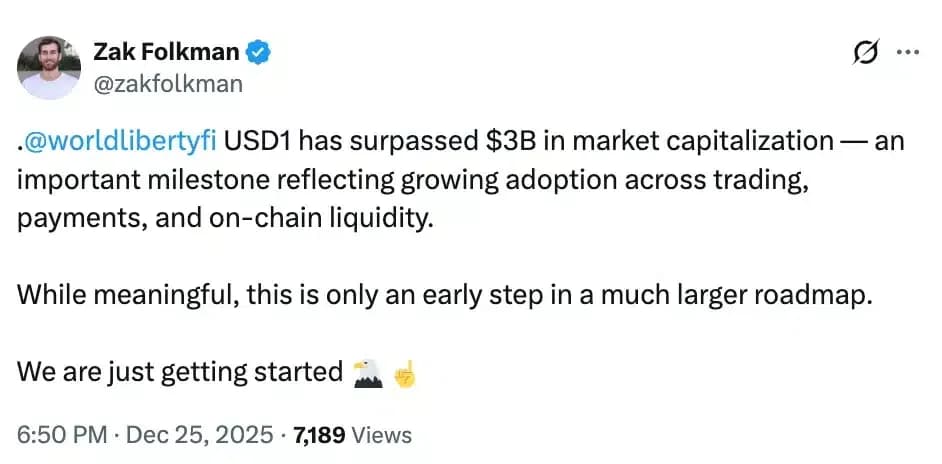 این جهش باعث شده استیبل سکه مرتبط با ترامپ به یک آهنربای نقدینگی بزرگ در صرافی ها تبدیل شود. تیم World Liberty Financial اخیراً در واکنش به این دستاورد نوشتند: «این یک لحظه بزرگ برای تیم ما و جامعه WLFI است. اما دستاوردها هدف نیستند — ساختن آینده زیرساخت های مالی هدف است. و ما تازه شروع کرده ایم.» زک ویتکوف، همبنیانگذار WLFI، نیز این موفقیت را جشن گرفت و گفت که پروژه تازه مسیر خود را آغاز کرده است.
