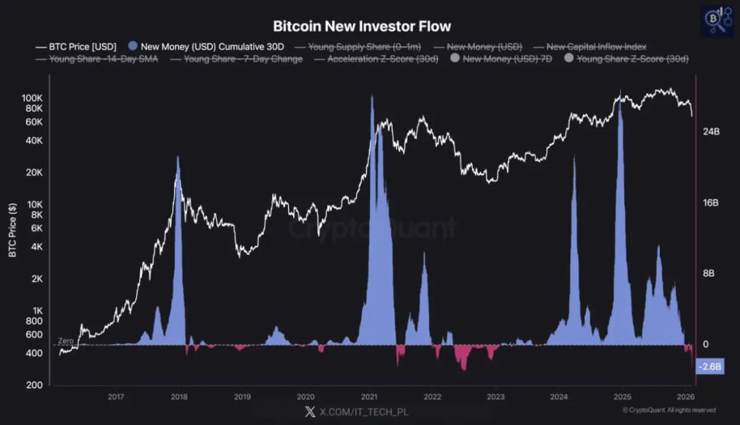 به طور کلی، «با وجود» افت بیش از 30 درصدی BTC از قله 97 هزار دلار آمریکا در میانه ژانویه، سرمایه تازه هنوز وارد بازار نشده است. به عبارت دیگر، سرمایه گذاران جدید هنوز ریسک-بازده قانع کننده ای در بیت کوین در سطوح فعلی نمی بینند.