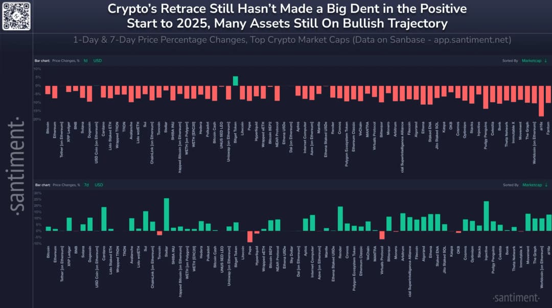 پست Santiment Insights به برخی از داراییهای برتر هفته گذشته اشاره کرد و بر داراییهای محبوبتر در بین ۱۰۰ دارایی برتر فضای کریپتو تمرکز داشت. دادهها نشان داد که ADA، XLM و INJ بهترین عملکرد را در هفته گذشته داشتهاند. رندر (RNDR) نیز با افزایش ۱۶.۵۵٪ در هفت روز، عملکرد قابل توجهی داشت. در همین حال، ADA ۱۹٪، XLM ۲۹٪ و INJ ۲۲٪ افزایش یافتند و حرکت قیمتی آنها در کوتاهمدت به شدت صعودی بود.