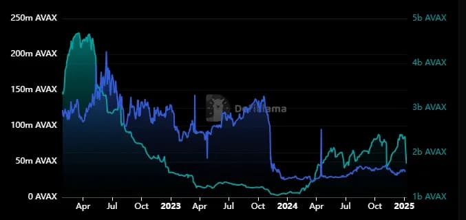 در حالی که تراکنشهای روزانه سالم نشان میدهد که شبکه در مسیر درستی قرار دارد، برای بهرهبرداری کامل از فرصتهای رشد به عوامل بیشتری نیاز است، از جمله رشد مثبت ارزش کل قفل شده (TVL) و تعداد استیبل کوینها. طبق دادههای DeFiLlama، هم TVL و هم ارزش بازار استیبل کوینها در شبکه Avalanche در حفظ رشد مثبت دچار مشکل بودهاند. به عنوان مثال، Avalanche دارای TVL معادل ۱.۳۷۵ میلیارد دلار بود که تقریباً ۱۰٪ از اوج تاریخی آن در دسامبر ۲۰۲۱ است. نقدینگی در شبکه Avalanche نیز کاهش یافته است. ارزش بازار استیبل کوینها در مارس ۲۰۲۲ به ۴.۶۸ میلیارد دلار رسید و در نوامبر ۲۰۲۳ به ۱.۰۵۱ میلیارد دلار کاهش یافت. سپس در سال ۲۰۲۴ به ۲.۴۳ میلیارد دلار بهبود یافت، اما سال جدید را با خروجیهای قابل توجه آغاز کرد.