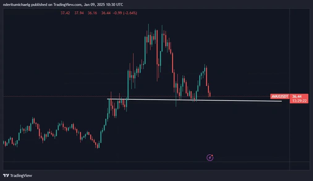 ارزش بازار استیبل کوینهای Avalanche در ۱۰ روز گذشته حدود ۱ میلیارد دلار کاهش یافته است. TVL آن نیز در همین دوره حدود ۱۴۰ میلیون دلار کاهش یافته است. مشخص نیست که آیا این عملکرد متناقض شبکه (افزایش تراکنشها و کاهش استیبل کوینها) بر قیمت AVAX تأثیر خواهد گذاشت یا خیر. حرکت قیمت این رمزارز با شرایط کلی بازار هماهنگ بوده است. AVAX در زمان نگارش این مطلب با قیمت ۳۶.۴۶ دلار معامله میشد و از ابتدای هفته ۱۸.۷٪ کاهش یافته بود.