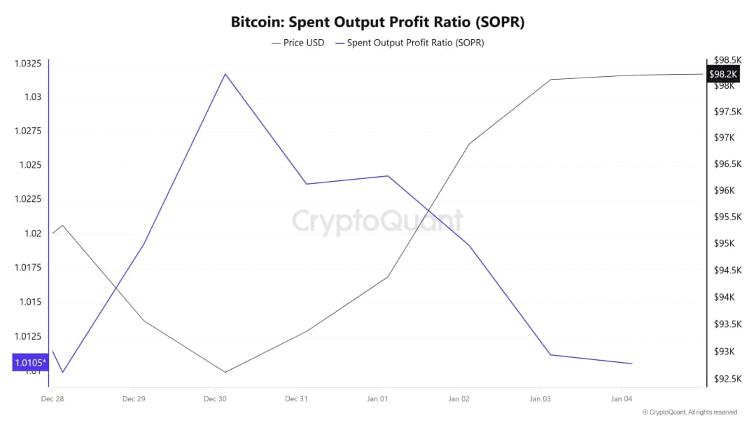 کاهش اخیر در نسبت سود خروجی خرج شده (SOPR) نشاندهنده تغییر در مالکیت و فعالیت بازار است. علیرغم این کاهش، SOPR در ۱.۰۱ باقی مانده است که نشان میدهد دارندگان تمایلی به فروش با ضرر ندارند. این رفتار بازار نشاندهنده حضور سرمایهگذاران قویتر است و نشان میدهد که سرمایهگذاران حتی در هنگام اصلاحات بازار به نگهداشتن موقعیتهای خود اطمینان دارند.