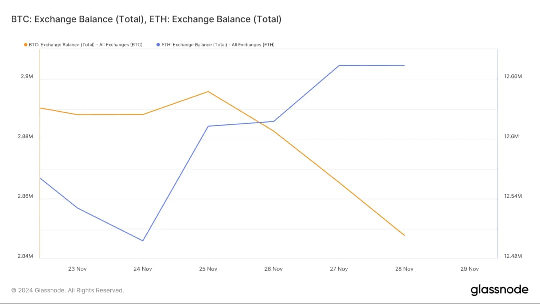 با این حال، معیاری که به نفع بیت کوین بود، موجودی صرافیها بود. موجودی بیت کوین در صرافیها کاهش یافت، در حالی که موجودی اتریوم افزایش یافت. این بدان معناست که سرمایهگذاران همچنان به خرید بیت کوین فکر میکنند، در حالی که سرمایهگذاران اتریوم در حال فروش هستند. به طور کلی، افزایش فشار فروش منجر به اصلاح قیمت میشود.
