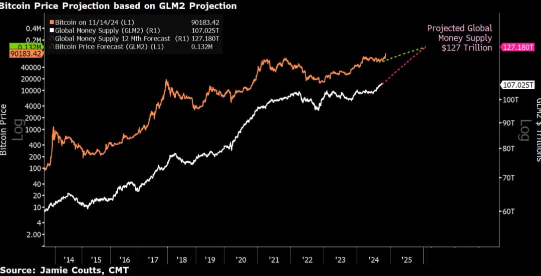 بر اساس تحلیلهای تاریخی، این موضوع میتواند ۲ تریلیون دلار سرمایهگذاری اضافی را به سمت بیت کوین جذب کند، زیرا بیت کوین قبلاً حدود ۱۰٪ از عرضه پول تازه چاپ شده را به خود اختصاص داده است. افزایش عرضه پول میتواند بیت کوین را برای رسیدن به اوج قیمتی بالقوه بالای ۱۳۲,۰۰۰ دلار آماده کند.