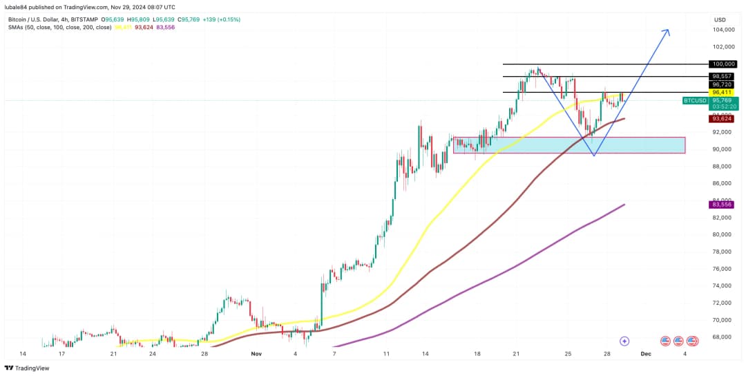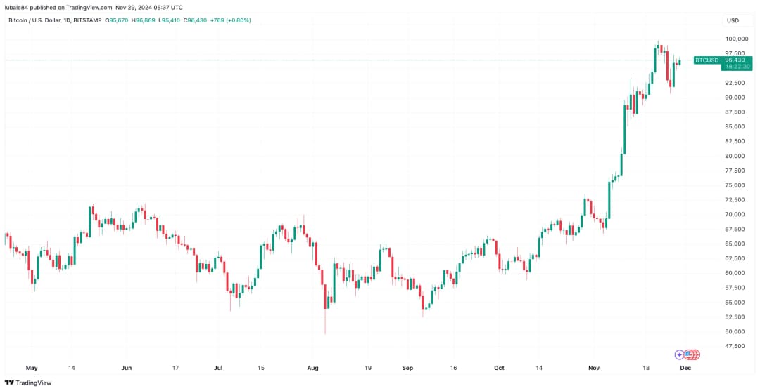 بیت کوین (BTC) پس از رسیدن به کف محلی ۹۰,۷۴۲ دلار در ۲۹ نوامبر، ۶.۲۵٪ افزایش یافته و به بالای ۹۶,۰۰۰ دلار بازگشته است. دادههای درون زنجیرهای نشان میدهد که نهنگها این هفته از قیمتهای تخفیفخورده استفاده کردهاند.