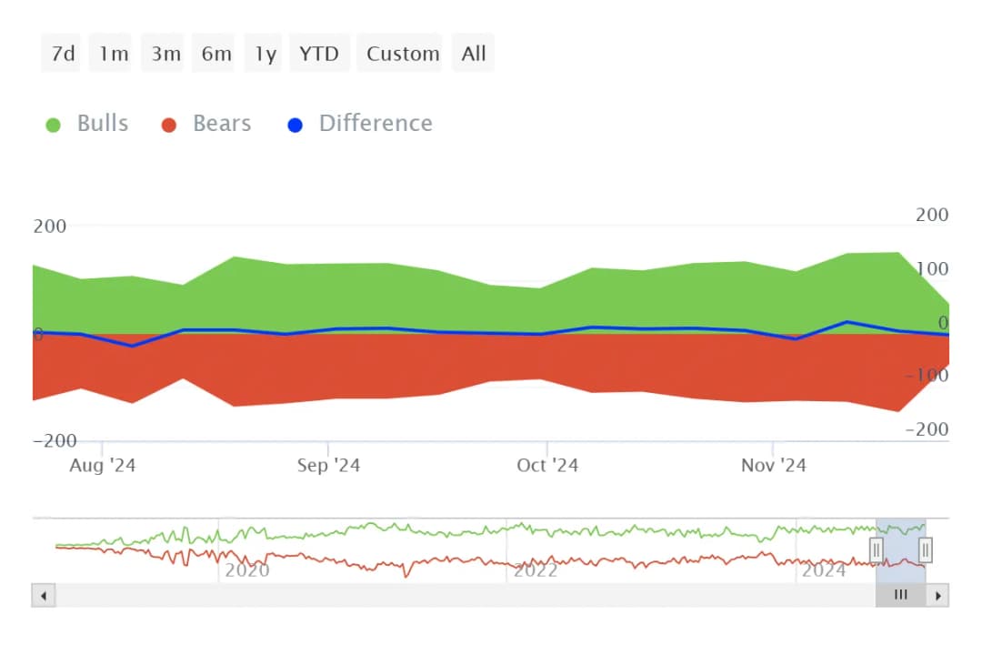 پس از یک صعود یک ماهه که شاهد افزایش ۱۳۷.۳۹ درصدی Cronos (CRO) بودیم، اکنون به نظر میرسد این روند در حال معکوس شدن است. این دارایی اخیراً با ثبت کاهش هفتگی ۴.۷۸ درصدی، نشاندهنده یک تغییر احتمالی در روند است. با این حال، در ۲۴ ساعت گذشته، AMBCrypto گزارش داد که معاملهگران مشتقات به بازیابی ۳.۰۳ درصدی قیمت کمک کردهاند. علیرغم این افزایش کوتاهمدت، فعالیت مداوم نهنگها همچنان چشمانداز کوتاهمدت CRO را با تردید مواجه میکند و سرمایهگذاران کوچکتر را در معرض خطر زیان قرار میدهد. در زمان نگارش این مطلب، دادههای IntoTheBlock نشاندهنده تمایل نزولی در بازار CRO است که میتواند فشار نزولی بر قیمت آن را نشان دهد. در هفت روز گذشته، ۱۴۴ گاو در مقابل ۱۱۵ خرس وجود داشت که تفاوت جزئی آنها ممکن است تنها به معنای یک خطر کاهش جزئی باشد. با این حال، دینامیک گستردهتر بازار نگرانیهای بیشتری را ایجاد میکند.