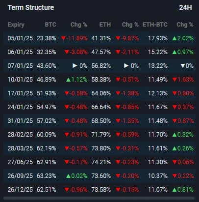 فعالیت معاملاتی پس از آن بالاتر از مقاومت قبلی، که اکنون بهعنوان حمایت در ۳۴۵۰ دلار عمل میکند، تثبیت شد. این تغییر در پویایی بازار میتواند به افزایش بیشتر منجر شود و در صورت ادامه قدرت خریداران، به اوجهای جدید برسد. در زمینه نوسانات بالای ساختار زمانی ETH، مسیر رسیدن به ۱۴ هزار دلار شامل استفاده از نوسانات شدید قیمت است. این ساختار تغییرات درصدی را نشان میدهد که پتانسیل بازدهی بالا را در میان ریسکها نشان میدهد. اتریوم یک الگوی نوسان ثابت را در چندین تاریخ انقضا نشان داد و فواصل کلیدی را برجسته کرد که در آن هوشیاری معاملهگران افزایش یافته بود. سرمایهگذاران میتوانند از این دورههای تغییر استفاده کنند و با پوشش ریسک در برابر نوسانات پایدارتر بیت کوین، نقاط ورود و خروج را بهینه کنند. این استراتژی، در صورت اجرای مناسب، میتواند به طور منطقی از صعود ETH به سمت ۱۴ هزار دلار حمایت کند، به ویژه اگر شرایط بازار با احساسات صعودی هماهنگ باشد.