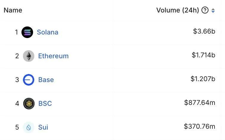 دادههای اخیر، سولانا را به عنوان یک بازیگر برجسته در معاملات صرافیهای غیرمتمرکز (DEX) نشان میدهد. این بلاکچین در حجم معاملات ۲۴ ساعته DEX از اتریوم و Base پیشی گرفته و رقم چشمگیر ۳.۶۶ میلیارد دلار را ثبت کرده است. این موضوع نشاندهنده اهمیت فزاینده سولانا در امور مالی غیرمتمرکز (DeFi) و توانایی آن در جذب نقدینگی قابل توجه است.