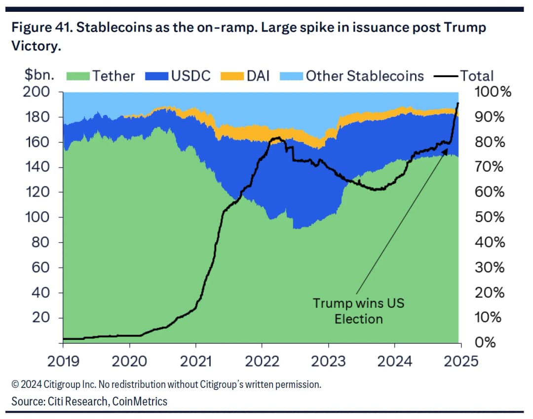 تحلیلگران انتظار دارند سال ۲۰۲۵ به یکی از بهترین سالهای کریپتو تبدیل شود که با پیروزی دونالد ترامپ در انتخابات نوامبر ایالات متحده و افزایش ورود سرمایههای نهادی به صندوقهای قابل معامله در بورس بیت کوین (BTC) و اتر (ETH) همراه است. Multicoin اعلام کرد: «با روی کار آمدن یک دولت حامی کریپتو در ایالات متحده و موفقیت بیسابقه ETFهای بیت کوین، شاهد تلاشهای ۵ ساله نهادهای مالی برای حمایت سریع از کریپتو خواهیم بود.»