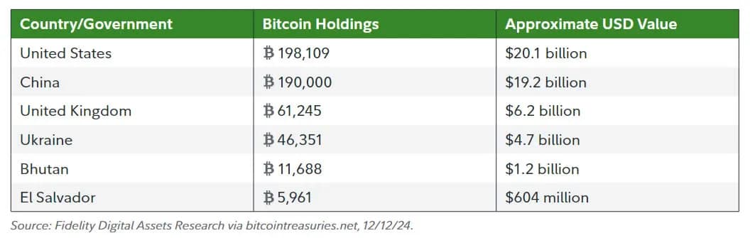 کشورهایی که انتظار میرود در سال ۲۰۲۵ بیت کوین را به ذخایر راهبردی ملی خود اضافه کنند، رشد قابل توجهی در بازار کریپتو ایجاد خواهند کرد. Fidelity Digital Assets در آخرین گزارش تحقیقاتی خود اعلام کرد: «ما پیشبینی میکنیم که دولتهای بیشتری به دنبال ایجاد موقعیتهای راهبردی در بیت کوین باشند.»