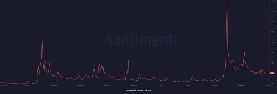 رشد شبکه کاهش یافته و در زمان نگارش خبر به ۲۰۰۶ رسیده است. این موضوع نشاندهنده کاهش فعالیت کاربران و تراکنشها است که معمولاً پس از حرکات بزرگ قیمتی اتفاق میافتد. با این حال، این میتواند فقط یک دوره آرامش موقت باشد. اینکه آیا این کاهش در بلندمدت بر قیمت تأثیر میگذارد یا خیر، به این بستگی دارد که آیا فعالیت نهنگها میتواند رشد جدیدی در شبکه ایجاد کرده و احساسات سرمایهگذاران را بهبود بخشد یا خیر.