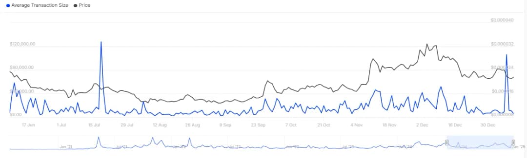 نهنگها آدرسهایی هستند که تا ۱٪ از کل عرضه یک دارایی را کنترل میکنند و نقش کلیدی در تأثیرگذاری بر روند قیمت دارند. در حال حاضر، تعداد تراکنشهای نهنگهای SHIB تقریباً نصف شده است. این تعداد از ۱۳۰ تراکنش در روز قبل به ۷۰ تراکنش کاهش یافته است. این کاهش، حجم کل معاملات را به حدود ۹۲۰.۷۶ میلیارد SHIB رسانده که معادل ۱۹.۸۷ میلیون دلار است.