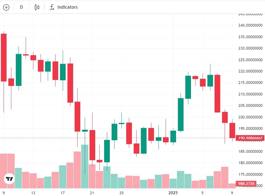 سولانا در سال ۲۰۲۵ با افزایش علاقه سرمایهگذاران خرد و انتظار برای ETF سولانا مستقر در ایالات متحده، شاهد رشد قابل توجهی خواهد بود. سولانا (SOL) در ۹ ژانویه به زیر سطح روانی کلیدی ۲۰۰ دلار سقوط کرد و پس از کاهش بیش از ۷ درصدی هفتگی، به روند نزولی خود ادامه داد. با وجود اصلاح فعلی، سولانا در آستانه بازدهی مالی قابل توجهی قرار دارد که عمدتاً توسط انتظارات سود سرمایهگذاران خرد هدایت میشود.