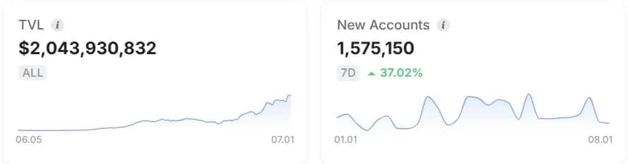 افزایش ارزش کل قفل شده (TVL) به 2 میلیارد دلار همراه با افزایش 37 درصدی هفتگی در حسابهای جدید، نشاندهنده تعامل قوی شبکه علیرغم اصلاحات گستردهتر بازار است. به طور تاریخی، چنین معیارهای مثبتی نشاندهنده افزایش احتمالی قیمت این کوین هستند، زیرا پذیرش بیشتر میتواند با فشارهای نزولی موجود مقابله کند.