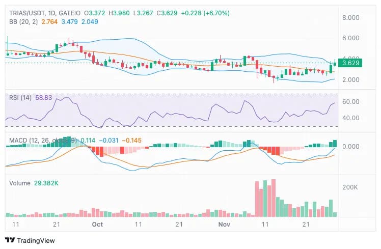 رشد ۳۵ درصدی TRIAS در ۲۴ ساعت؛ آماده عبور از مقاومت $3.98