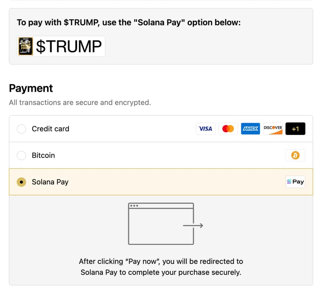 بر اساس گزارش ۲۹ ژانویه بلومبرگ، سه وبسایتی که TRUMP را برای خرید کالاهای ترامپ میپذیرند، GetTrumpSneakers.com، GetTrumpWatches.com و GetTrumpFragrances.com هستند. طبق گزارش Citizens for Responsibility and Ethics in Washington، شرکت CIC Ventures LLC که به ترامپ مرتبط است، مالک این وبسایتها است. علاوه بر توکن ترامپ، این وبسایتها بیت کوین (BTC) را نیز میپذیرند.