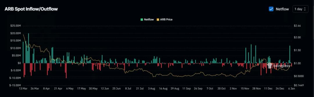 علاوه بر این، معاملهگران اسپات به طور فزایندهای ARB را از صرافیها به کیف پولهای خصوصی برای نگهداری بلندمدت منتقل میکنند. بیش از ۲.۳۹ میلیون دلار ARB در ۲۴ ساعت گذشته از صرافیها خارج شده که میتواند منجر به کاهش عرضه شود.