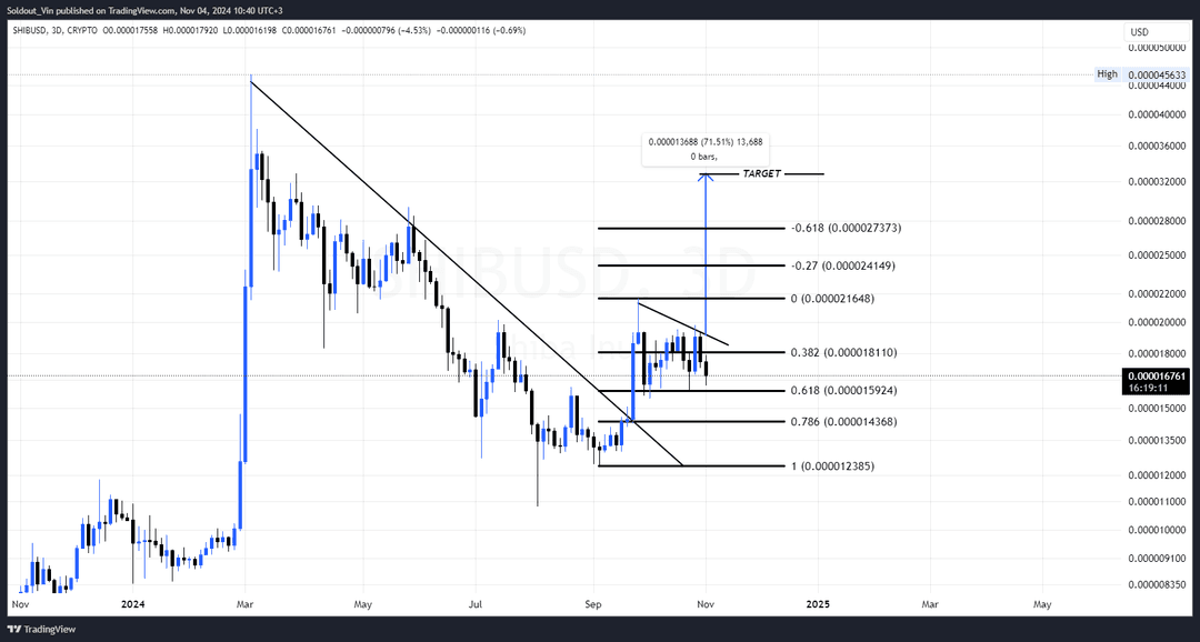 پیشبینی قیمت شیبا اینو نشان میدهد که این دارایی اخیراً یک خط روند نزولی بلندمدت را شکسته است و این میتواند نشاندهنده تغییر به سمت یک روند صعودی باشد. در حال حاضر، SHIB به صورت جانبی حرکت میکند و نشانههایی از تثبیت بالای سطح ۰.۶۱۸ فیبوناچی را نشان میدهد که به معنای انباشت است.