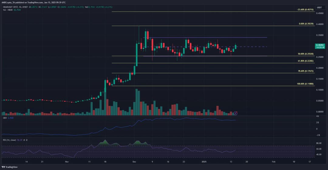 آیا افزایش ۲۰ درصدی Hedera (HBAR) برای عبور از محدوده معاملاتی آن کافی است؟