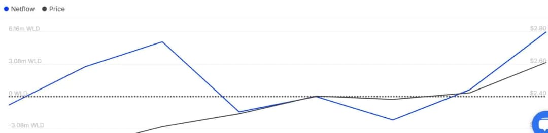به این ترتیب، جریان خالص نگهداریکنندگان بزرگ در ۲۴ ساعت گذشته از ۶۰۳.۶۸ هزار به ۶.۱۶ میلیون افزایش یافته است. این نشان میدهد که ورود سرمایه از سوی نهنگها به این دارایی بیشتر از خروج آن است. با توجه به اینکه نهنگها به خرید WLD روی آوردهاند، این امر نشان میدهد که آنها نسبت به افزایش قیمت خوشبین هستند و انتظار دارند WLD سود بیشتری کسب کند. به طور قابل توجهی، افزایش انباشت نهنگها نشاندهنده احساسات مثبت است. بنابراین، شرایط فعلی بازار WLD را برای افزایش بیشتر قیمت آماده میکند.