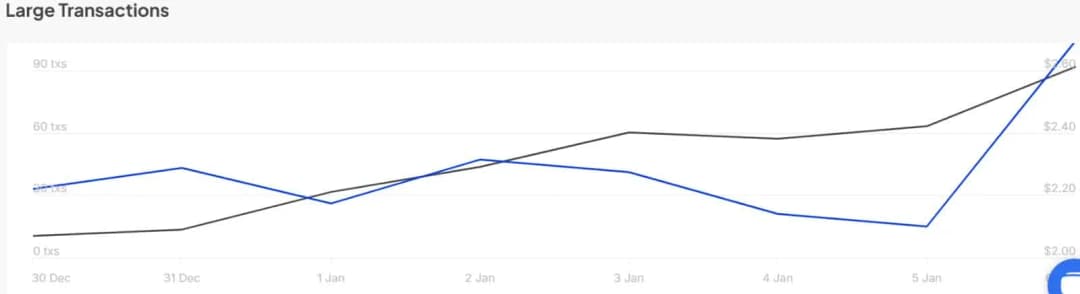 تعداد تراکنشهای بزرگ از ۱۵ به ۱۰۴ افزایش یافته است. هنگامی که فعالیت نهنگها افزایش مییابد، میتواند نشاندهنده فروش یا حتی انباشت باشد. از آنجا که این افزایش با افزایش جریان خالص نگهداریکنندگان بزرگ همراه بوده، نشان میدهد که نهنگها به طور فعال در حال خرید WLD هستند.