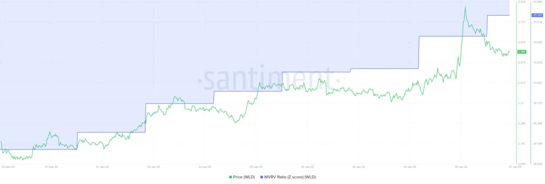 در حال حاضر، نسبت MVRV این آلتکوین در منطقه منفی و برابر با -۱۵ است. این نشان میدهد که WLD همچنان کمتر از ارزش واقعی خود قیمتگذاری شده و بسیاری از دارندگان آن در ضرر هستند. به طور تاریخی، نسبت MVRV منفی یک فرصت خرید محسوب میشود و به سرمایهگذاران اجازه میدهد تا دارایی را با قیمتهای پایینتری خریداری کنند. معمولاً قیمتها از این سطوح بهبود مییابند زیرا خریداران وارد بازار میشوند و با افزایش تقاضا قیمتها را بالا میبرند.
