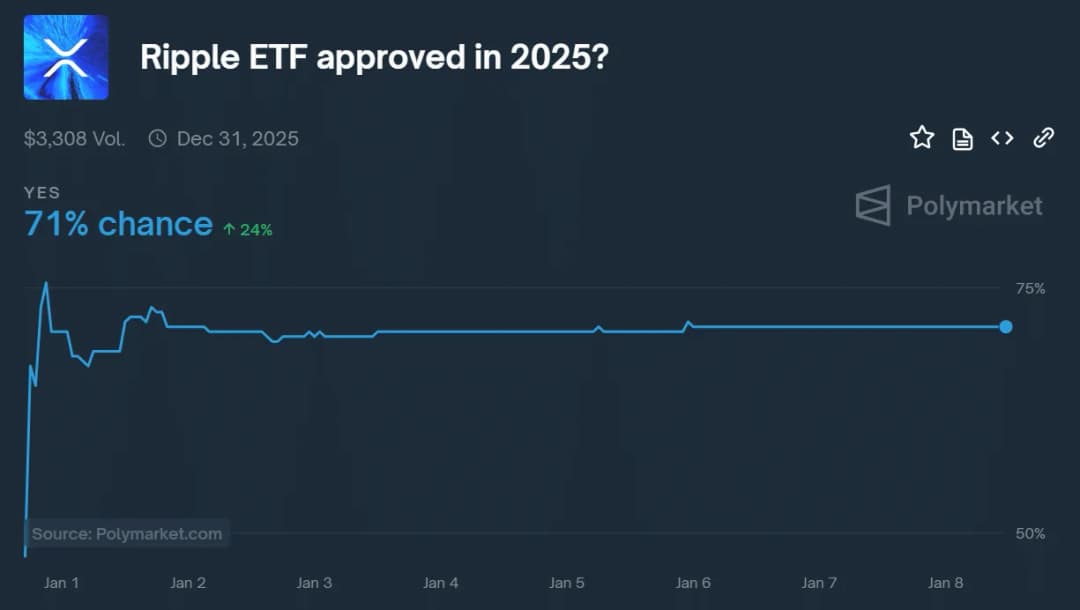 با این اوصاف، سایت پیشبینی Polymarket شانس تأیید ETF ریپل در سال ۲۰۲۵ را بیش از ۷۰٪ ارزیابی کرده است که نشاندهنده انتظار کلی بازار است.