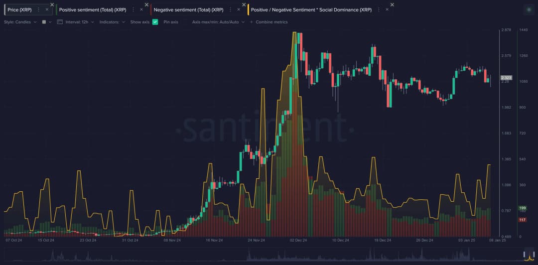 این عوامل باعث بهبود احساسات جمعی نسبت به XRP شده است، زیرا دادههای Santiment نشاندهنده افزایش امتیاز احساسات مثبت است. لازم به ذکر است که این شاخص در پایان نوامبر ۲۰۲۴ بسیار بالاتر بود، اما در حال حاضر دوباره در حال بهبود است.