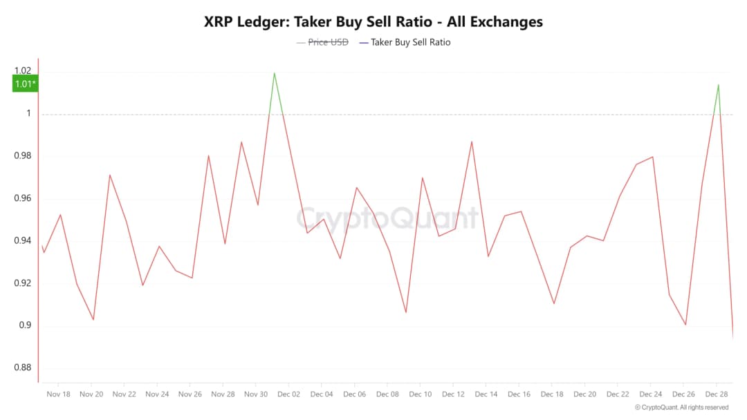 نسبت خرید و فروش تیکر در ۲۴ ساعت گذشته ۱٪ افزایش یافته است که نشاندهنده برتری جزئی خریداران در معاملات دائمی است. این معیار معمولاً نشاندهنده اعتماد بیشتر معاملهگران به پتانسیل صعودی XRP است. علاوه بر این، این افزایش فعالیت خرید میتواند فشار خرید بیشتری را تشویق کند و به XRP کمک کند تا از فاز تثبیت خود خارج شود. با این حال، حفظ تسلط خریداران برای جلوگیری از هرگونه بازگشت قیمت در نمودارها ضروری است.