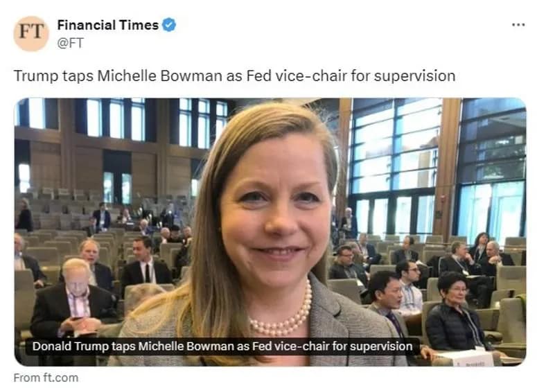 میشل بومن، عضو فعلی هیئت مدیره فدرال رزرو، به عنوان نایب رئیس جدید نظارت فدرال رزرو انتخاب شد.