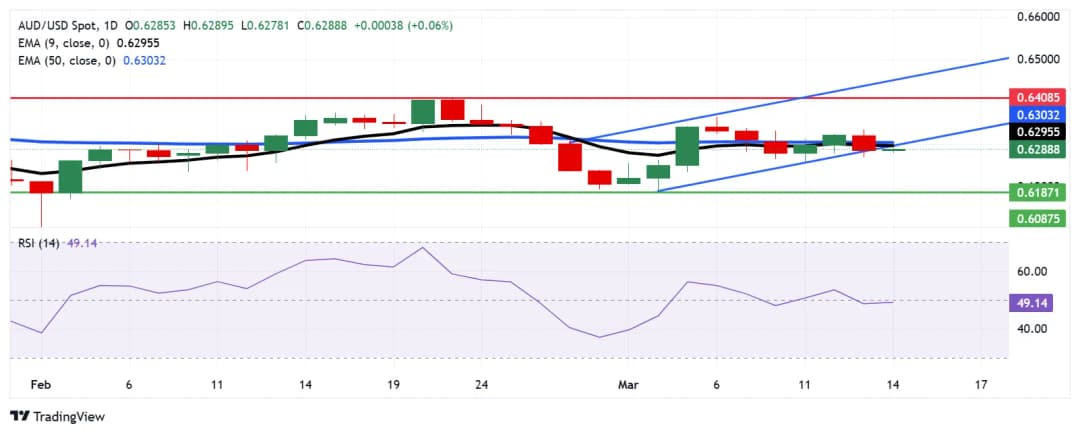 در جهت نزولی، جفت ارز AUD/USD میتواند منطقه اطراف پایینترین سطح پنج هفتهای ۰.۶۱۸۷ را که در ۵ مارس ثبت شده بود، بررسی کند. این جفت ارز، مانع فوری میانگین متحرک نمایی (EMA) ۹ روزه ۰.۶۲۹۵ را آزمایش میکند که به دنبال آن EMA ۵۰ روزه در سطح ۰.۶۳۰۳ قرار دارد. شکست بالاتر از این سطوح میتواند حرکت قیمت کوتاهمدت و میانمدت را بهبود بخشد و از جفت ارز برای بررسی منطقه اطراف بالاترین سطح سه ماهه ۰.۶۴۰۸ که آخرین بار در ۲۱ فوریه مشاهده شده بود، حمایت کند.