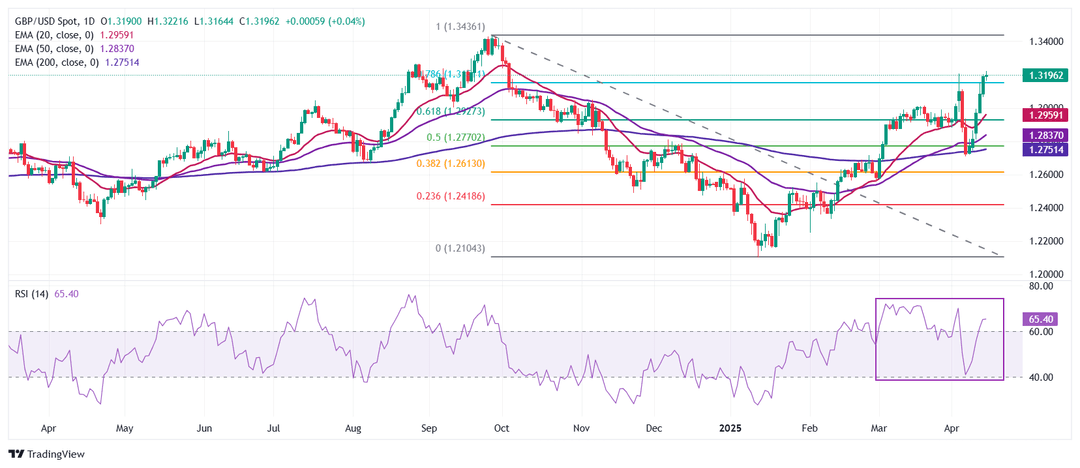 پوند استرلینگ در معاملات اروپایی روز سهشنبه به نزدیک بالاترین سطح شش ماهه، یعنی ۱.۳۲۲۰، دست یافت. جفت ارز GBP/USD با استحکام معامله میشود؛ زیرا دلار آمریکا تحت فشار قرار دارد و سرمایهگذاران به دلیل تصمیمات ناپایدار در سیاستهای تجاری توسط رئیسجمهور، اعتماد خود را نسبت به ساختار دلار از دست دادهاند. شاخص دلار آمریکا (DXY) که ارزش دلار را در برابر شش ارز اصلی اندازهگیری میکند، کمی بالاتر از حداقل سهساله یعنی ۹۹.۰۰ معامله میشود.