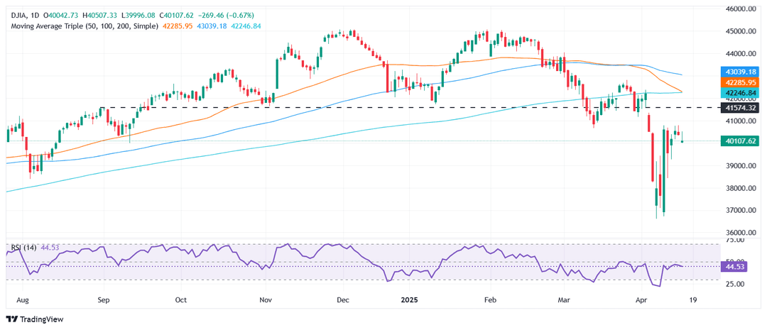 علاوه بر این، معاملهگران در انتظار سخنرانی رئیس فدرال رزرو، جروهم پاول، در ساعت ۱۷:۳۰ به وقت گرینویچ هستند تا سرنخهایی درباره مسیر نرخ بهره دریافت کنند. شاخص داو جونز گرایش نزولی دارد، اگرچه برخی از فعالان بازار توانستهاند سودهای خود را بالای ۴۰,۱۰۰ حفظ کنند. با این حال، روند به نفع فروشندگان (خرسها) است؛ چنانچه داو جونز زیر این سطح قرار گیرد، احتمال کاهش بیشتر به سطح پایین ۱۴ آوریل (۳۹,۸۷۷) و سپس به سطح ۷ آوریل (۳۶,۴۸۰) وجود دارد. از سوی دیگر، عبور از سطح ۴۰,۵۰۰ میتواند مسیر آزمایش بلندترین سطحهای ۱ آوریل یعنی ۴۰,۹۰۹ و ۴۱,۰۰۰ را هموار کند.