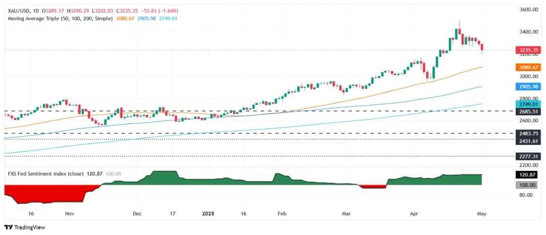 به نظر میرسد قیمت طلا در حال اصلاح است، زیرا خریداران نتوانستند از کف نوسان 23 آوریل در 3,260 دلار دفاع کنند و سطح 3,200 دلار را در معرض ریسک قرار دادند.