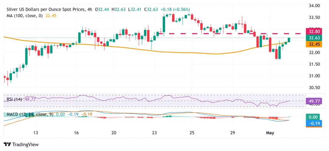 پیشبینی قیمت نقره: XAG/USD از کف چندهفتهای جهش کرد و بالای میانه ۳۲ دلار قرار گرفت