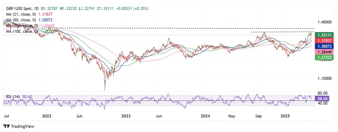 اخبار و پیشبینی قیمت پوند استرلینگ: GBP/USD در نزدیک 1.3290 خریداران را جذب میکند