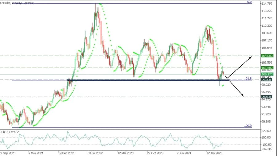 - بازگشت از حمایت دلار را به ۱۰۱.۵۰۰ و سپس ۱۰۴.۰۰۰ میبرد؛