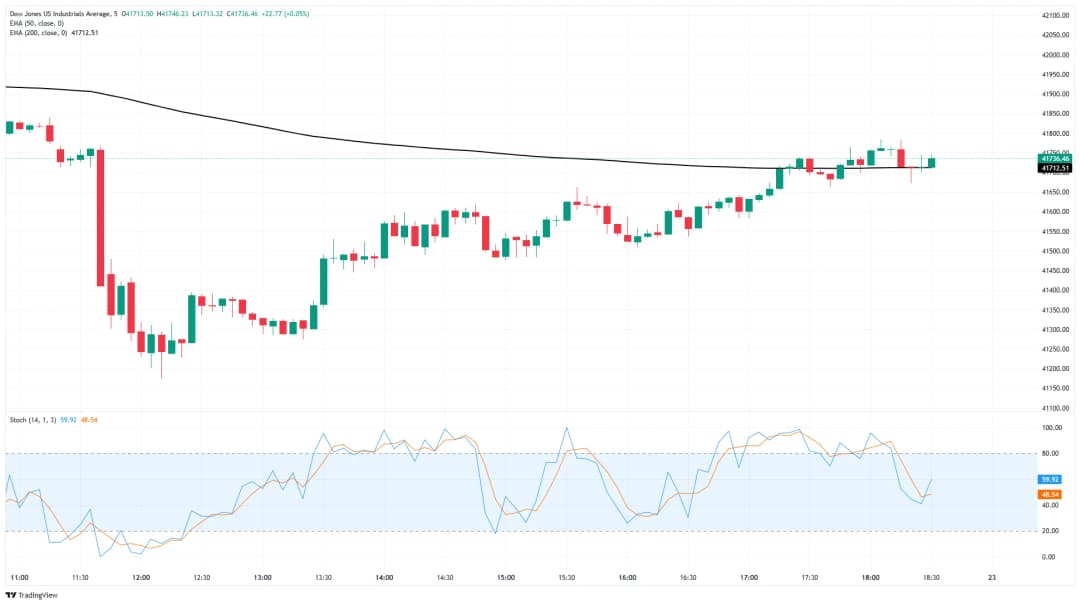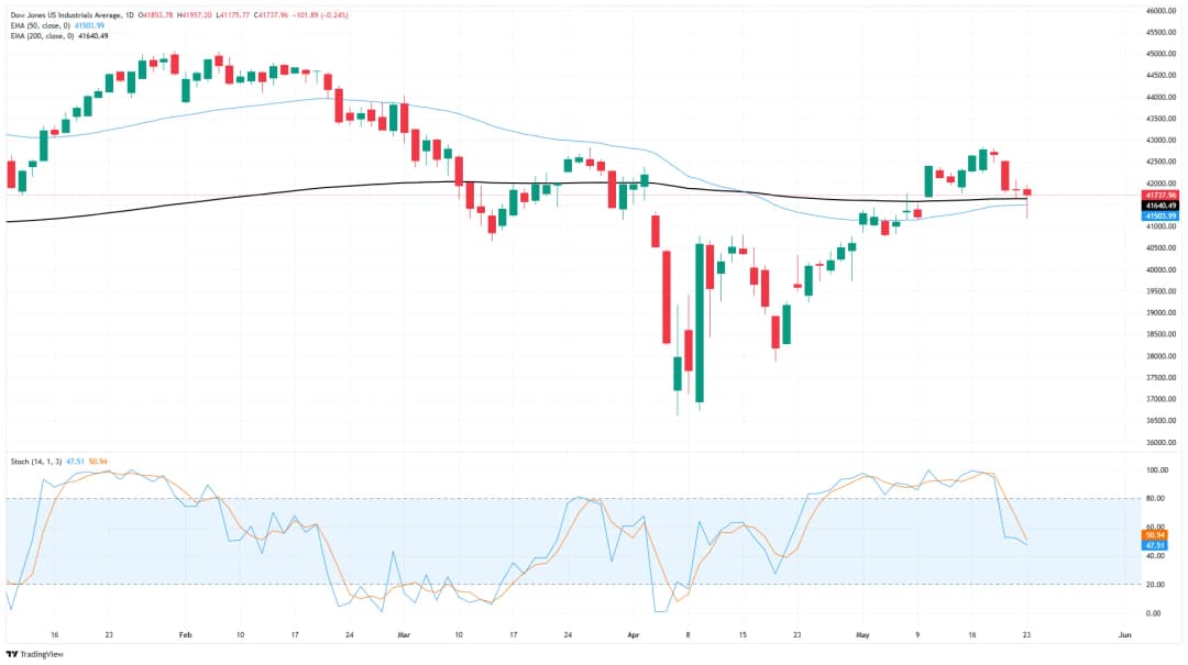 جمعهٔ گذشته با افت شدیدی همراه بود و داو جونز را به نزدیکی میانگین متحرک نمایی ۲۰۰ روزه بازگرداند، چرا که روند بهبود پس از تعلیق تعرفهها ظاهراً به پایان رسیده است.