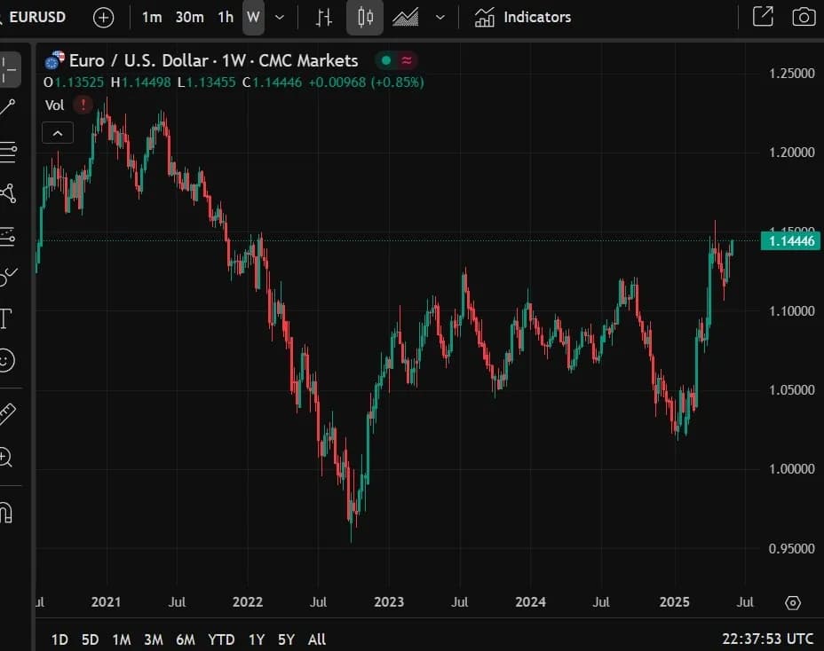 بانک Standard Chartered انتظار دارد یورو در محدوده ۱.۱۴ تثبیت شود، که توسط چشمانداز سیاست ثابت بانک مرکزی اروپا و بهبود اعتماد کسبوکار در آلمان حمایت میشود، اما ممکن است با بازگشت سرمایهها به داراییهای آمریکایی محدود شود.