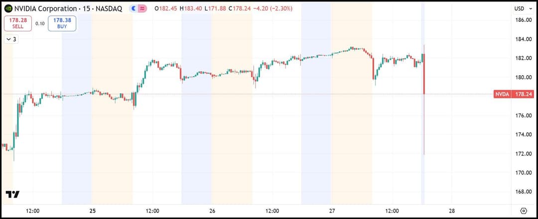 همزمان، سهام NVDA در معاملات پس از بازار روز چهارشنبه تا سطح ۱۷۲ دلار ریزش کرد.