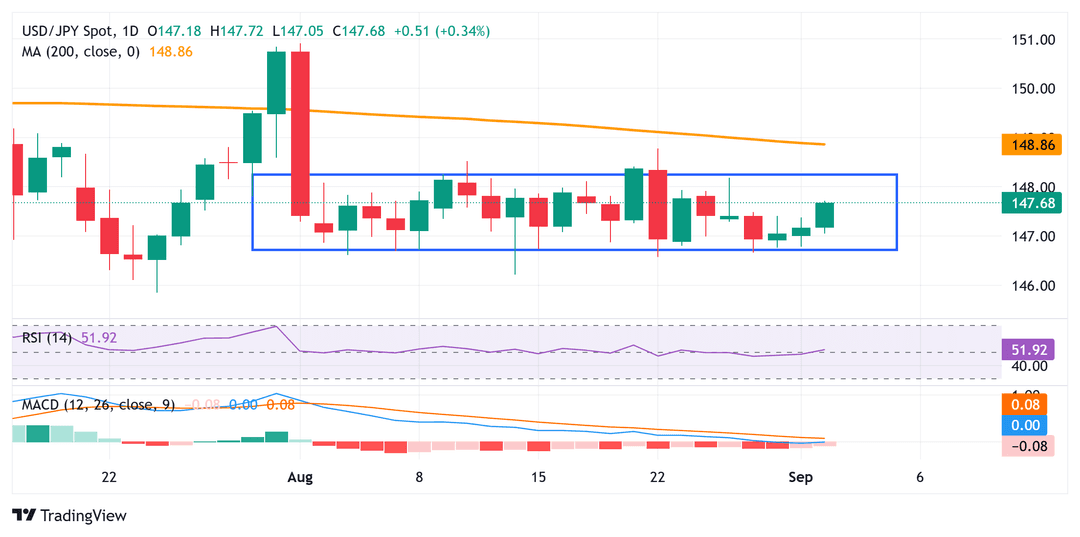 ین ژاپن برای سومین روز متوالی در برابر دلار آمریکا تضعیف شده و موجب شد جفت ارز USD/JPY در جلسه آسیایی روز سهشنبه تا حدود 147.65، یعنی نزدیک به بالاترین سطح چند روزه صعود کند.