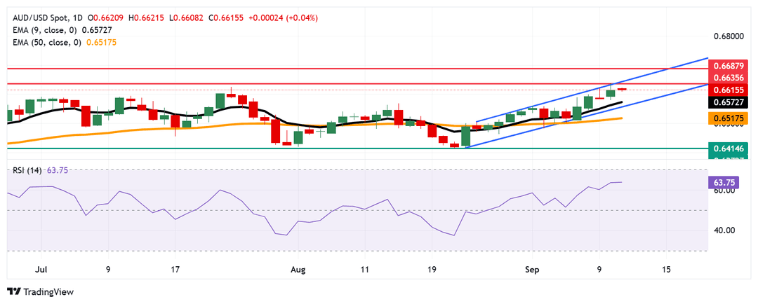 جفت AUD/USD در روز پنج شنبه حوالی 0.6620 معامله می شود. تحلیل تکنیکال نمودار روزانه نشان می دهد که جفت همچنان در داخل الگوی کانال صعودی قرار دارد که حکایت از یک جهت گیری صعودی پایدار دارد. علاوه بر این، جفت بالای میانگین نمایی نه روزه قرار دارد که نشان می دهد مومنتوم قیمتی کوتاه مدت قوی تر است.