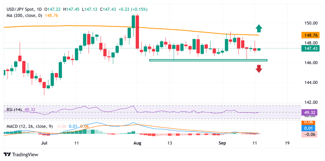 در ادامه اهداف بعدی شامل سطح 149.00 و سقف نوسان ماهانه حوالی 149.15 است که در صورت عبور قاطع از آنها، محرک جدیدی برای گاوها تلقی خواهد شد. از طرف دیگر، تثبیت زیر رقم گرد 147.00 میتواند حمایت محوری 146.30-146.20 را در معرض دید قرار دهد. شکست قانعکننده زیر این محدوده و عبور از 146.00 میتواند USD/JPY را آسیب پذیر کند و سقوط شتابدار تا حمایت میانی 145.35 در مسیر سطح روانی 145.00 را محتمل سازد.
