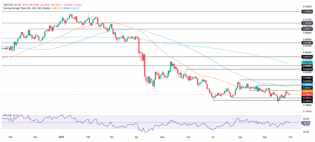 USD/CHF بالای 0.7939 تثبیت شد؛ چشم به بازپس گیری 0.8000
